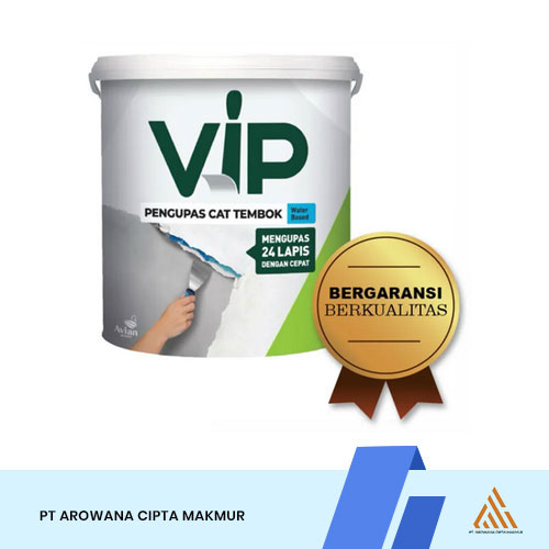 VIP Paint Remover WB adalah cairan pengupas cat tembok berbahan dasar air, yang mampu menghilangkan/mengupas hingga 24 lapis cat, tanpa menimbulkan resiko iritasi di tangan, tidak mudah kering/menguap, serta tidak merusak pori pori permukaan bidang. Sangat cocok untuk menghilangkan/mengupas segala macam jenis cat, mulai dari cat tembok, cat pelapis anti bocor dan segala macam jenis cat 1 komponen lainnya seperti cat enamel, lacquer, baking, printing, politur, vernis dan lain-lain pada permukaan tembok, plesteran, kayu dan metal, baik interior maupun eksterior.
